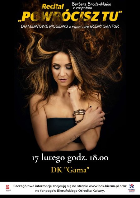 „Powrócisz tu” to diamentowo - muzyczne wspomnienia największych hitów z repertuaru Królowej Polskiej Piosenki – Ireny Santor, które zabrzmią w nowych aranżacyjnych odsłonach.