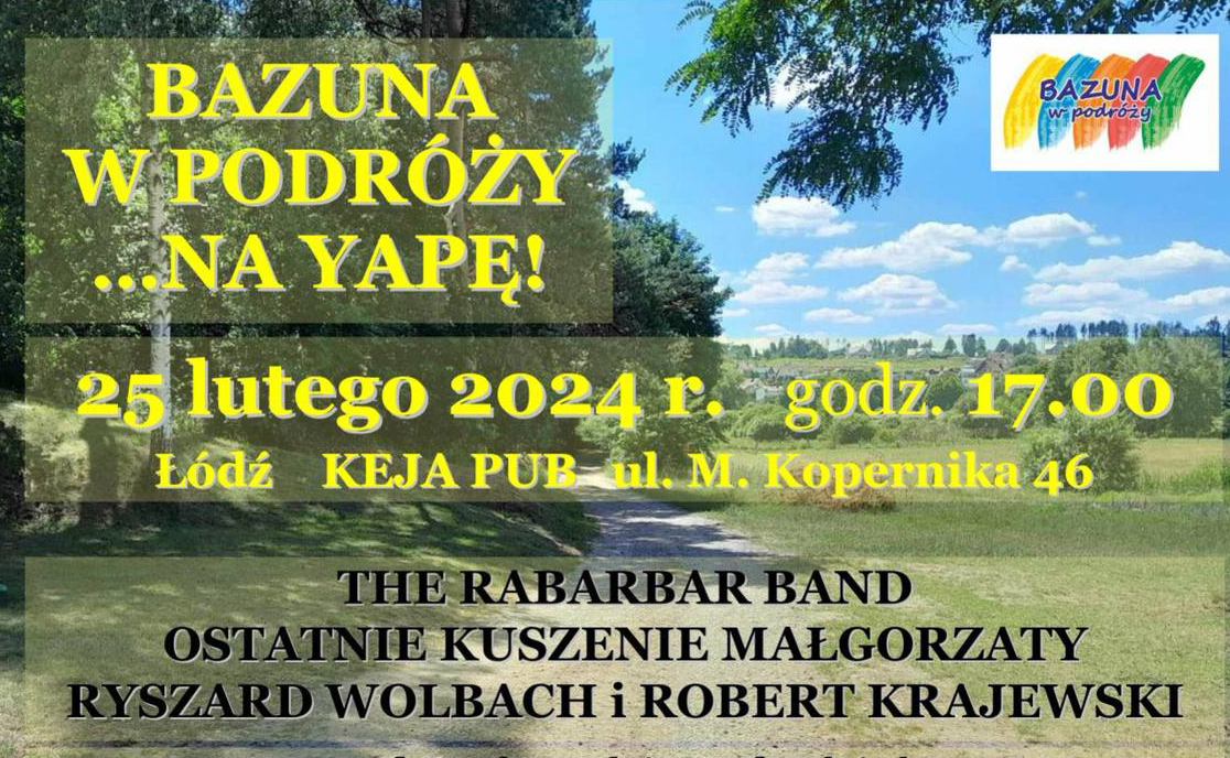 Prezentacja artystów znanych z szerokiego kręgu piosenki, łącząca dwie zaprzyjaźnione Przeglądy – pomorski BAZUNA i łódzki YAPA, na dwa tygodnie przed tegoroczną edycją imprezy lódzkiej Zagrają Rabarbar Band Ostatnie kuszenie Małgorzaty Ryszard Wolbach i Robert Krajewski
