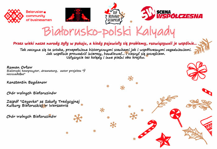 БСБ (Białoruska społeczność biznesmenów) zaprasza na wspólne kolędowanie.