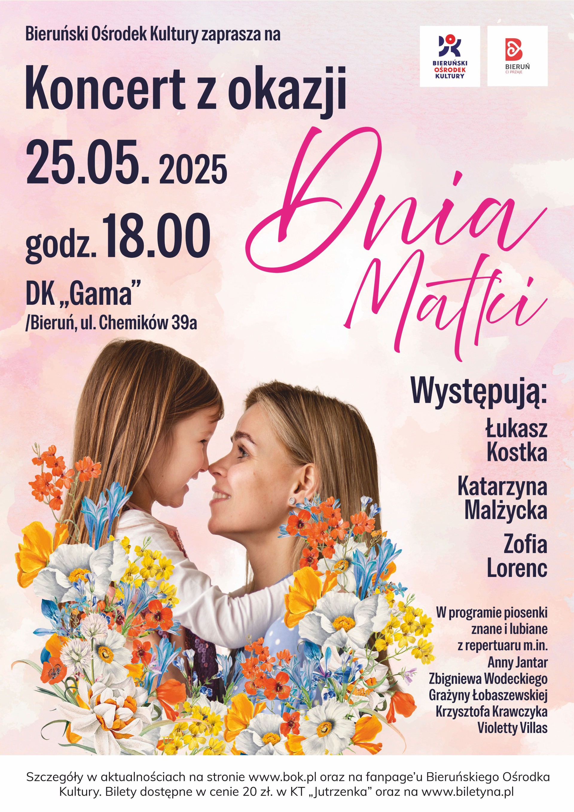 25 maja 2025 r. o godz. 18.00 w DK "Gama" (Bieruń, ul. Chemików 39a) czeka Nas wieczór pełen wzruszających melodii, radosnych dźwięków i atmosfery, która pozwoli nam oderwać się od codzienności. To nie tylko koncert - to okazja, by wspólnie celebrować chwile, które zostaną z nami na zawsze.