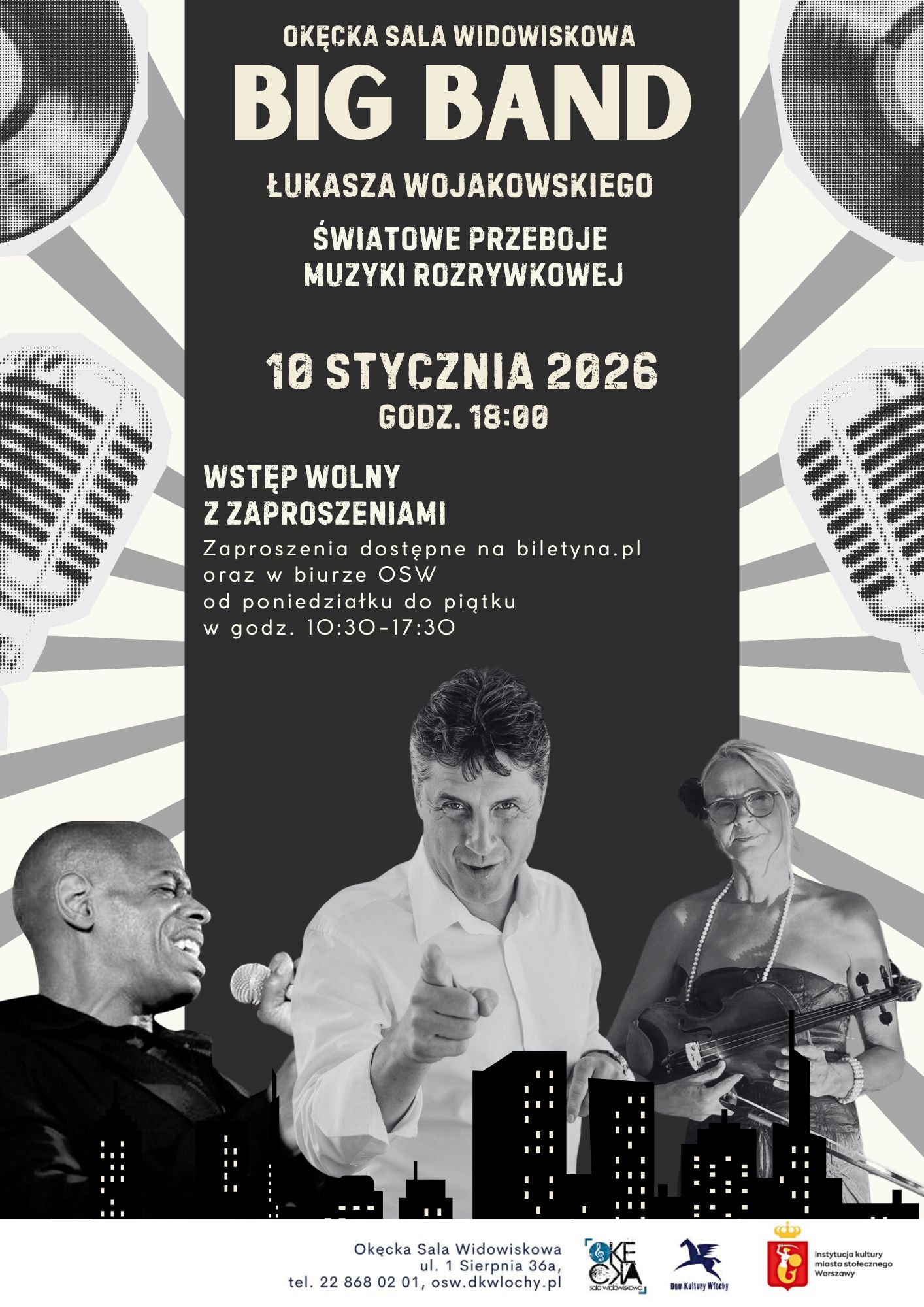 Zapraszamy na noworoczny koncert światowych przebojów muzyki rozrywkowej w wykonaniu Big Bandu pod dyrekcją Łukasza Wojakowskiego wraz z solistami: Agnieszką Wojakowską oraz Barry Solone.