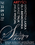 OŚRODEK KULTURY IM. STEFANA ŻEROMSKIEGO oraz JAKUB WOCIAL we współpracy z Teatrem Rampa w Warszawie zapraszają na wczesnojesienne wydanie koncertu 'BROADWAY STREET'. m 22 września na wielkiej scenie Amfiteatru Parku Sowińskiego w Warszawie zabrzmią MISS SAIGON, LES MISÉRABLES, JESUS CHRIST SUPERSTAR, czy PIPPIN, KINKY BOOTS oraz AIDA. Poza JAKUBEM wystąpi KATARZYNA ŁASKA, a także OLA BIEŃKOWSKA i ŁUKASZ TALIK - artyści polskich scen musicalowych, którzy w 'BROADWAY STREET' zaśpiewają po raz pierwszy. NOWA SCENA, NOWY REPERTUAR, NOWE GLOSY I WRZEŚNIOWE SŁOŃCE. CZEKAMY JUŻ TYLKO NA WAS. DO ZOBACZENIA.