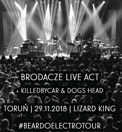 Zapraszamy na wyjątkowe wydarzenie. Po świetnie przyjętym koncercie z Łąki Łan Brodacze live act wracają do Torunia w doskonałym towarzystwie Killedbycar i toruńskiego DOGS HEAD