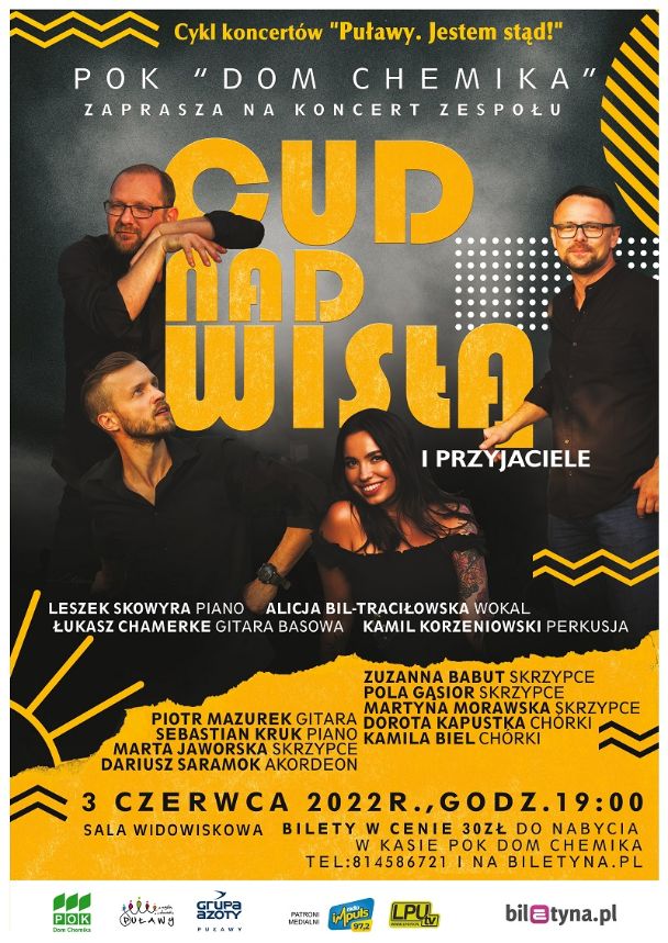 "Cud nad Wisłą" to puławski zespół muzyczny, który swoją pasją i piękną muzyką zyskał duże grono fanów w naszym mieście i nie tylko. Każde miejsce, w którym grają, zostaje wypełnione po brzegi ich wspaniałą publicznością.