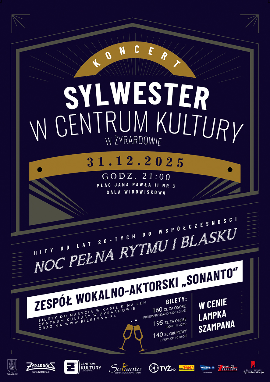 🎉 Zapraszamy na wyjątkowego Sylwestra w Centrum Kultury w Żyrardowie! 🎉