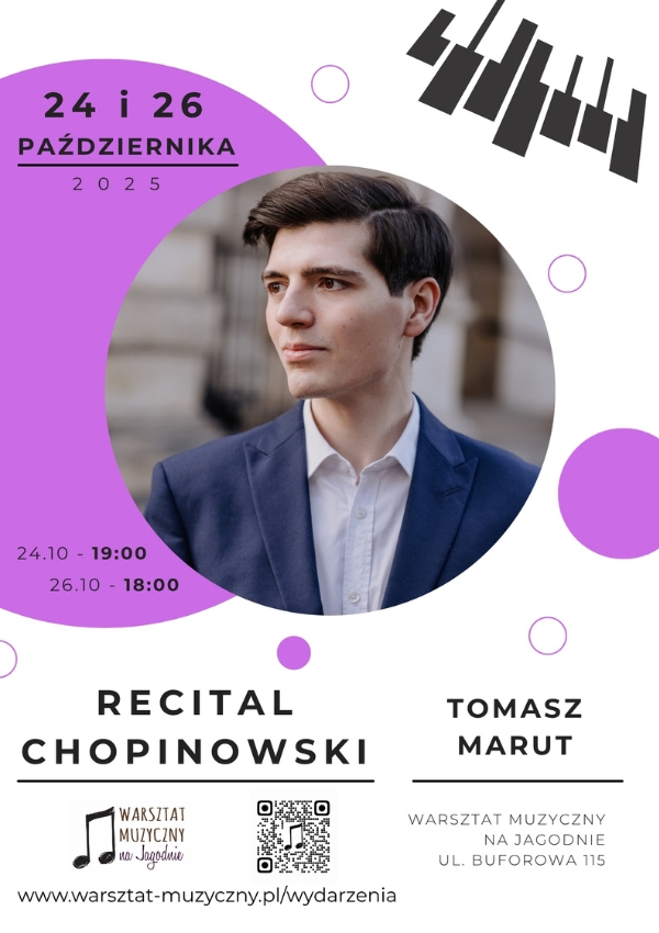 Zapraszamy na wyjątkowy recital fortepianowy Tomasza Maruta – pianisty, który z pasją i wrażliwością interpretuje muzykę Fryderyka Chopina.