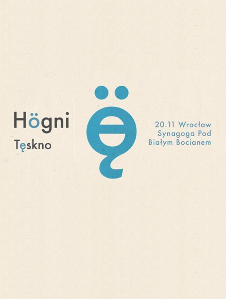 20 listopada w Synagodze Pod Białym Bocianem wystąpi Högni - wokalista legendarnej islandzkiej grupy GusGus, któremu towarzyszyć będzie na scenie kwartet smyczkowy oraz polski projekt Tęskno, który promować będzie swój debiutancki album.