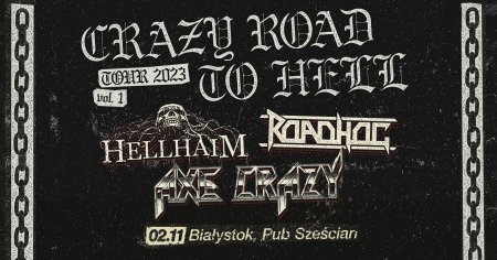 Helicon Metal Promotions z dumą zaprasza na pierwszą odsłonę trasy koncertowej „Crazy Road to Hell”, podczas której trzy niekwestionowane krajowe potęgi – Axe Crazy, Roadhog i Hellhaim – przetoczą się przez kraj, szerząc heavy metalową ewangelię.