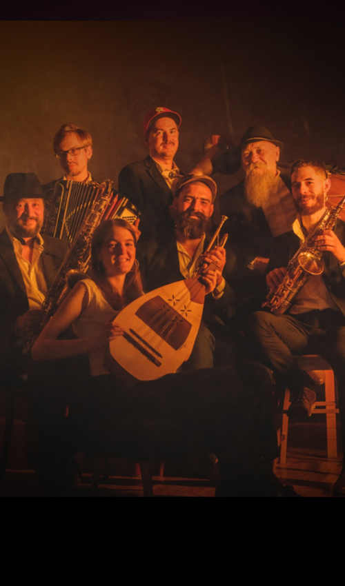 Siedmiu muzyków, połączonych fascynacją kulturą Europy Południowo-Wschodniej rozgrzeje scenę (i parkiet!), przywracając do życia melodie, które przetrwały wieki: do tańca, do świętowania, do bycia razem. W ich repertuarze znajdą się zarówno utwory tradycyjne, jak i autorskie kompozycje inspirowane muzyką ludową.