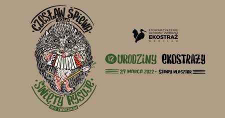 Z okazji 12. urodzin Stowarzyszenia Ochrony Zwierząt EKOSTRAŻ zapraszamy Was serdecznie na niezwykłe koncerty połączone z wystawą i licytacjami na rzecz zwierząt! Specjalnie dla Was zagra Czesław Śpiewa Solo, a wcześniej klimat podkręci wrocławski rysownik i muzyk Maciej Święty.