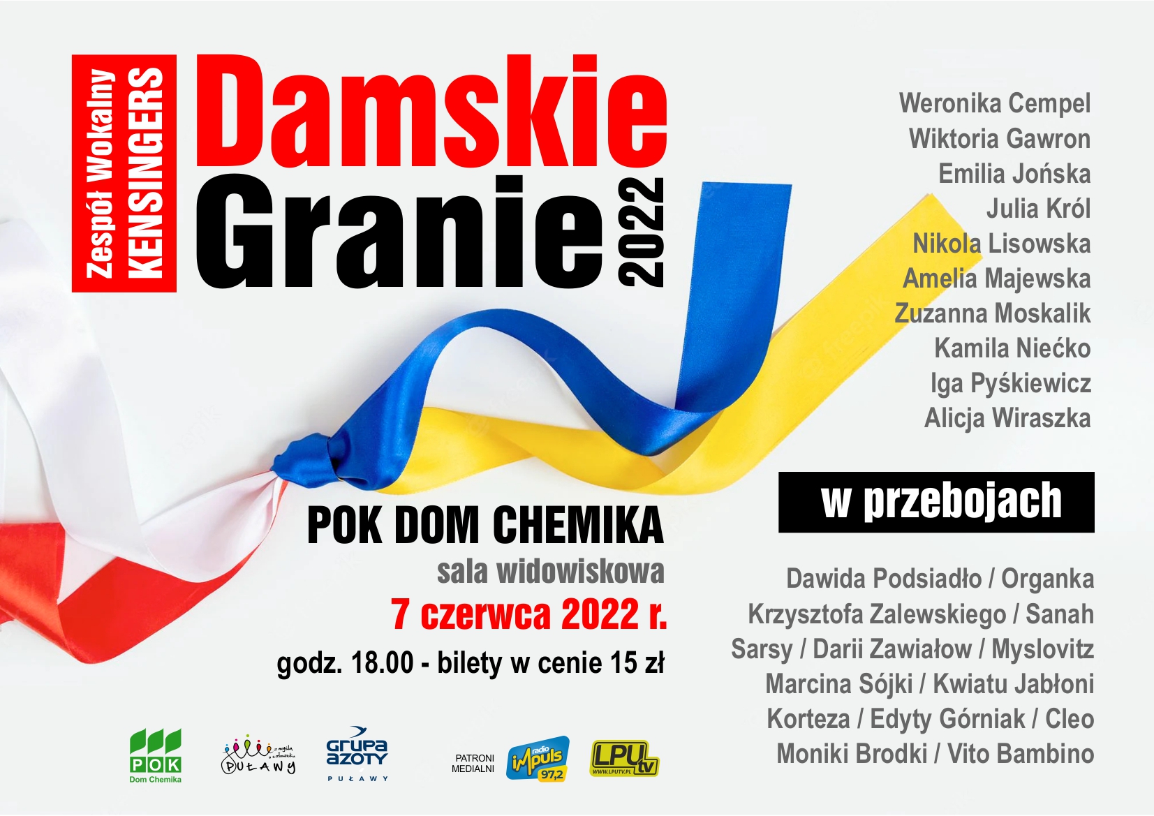 Zespół KENSINGERS wystąpi w składzie: Weronika Cempel, Wiktoria Gawron, Emilia Jońska, Julia Król, Nikola Lisowska, Amelia Majewska, Kamila Niećko, Iga Pyśkiewicz oraz Alicja Wiraszka.