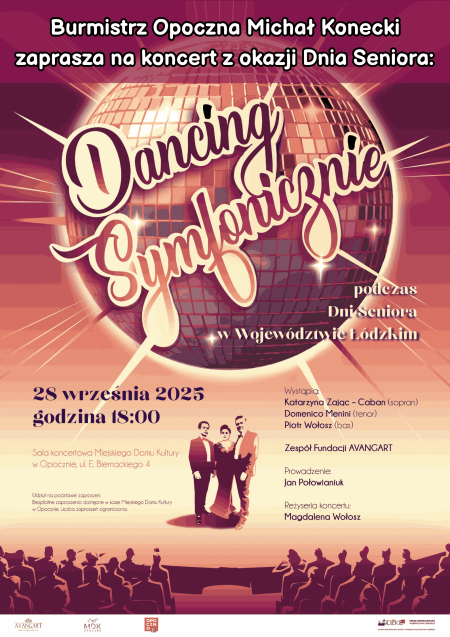 Burmistrz Opoczna Michał Konecki zaprasza seniorów z Gminy Opoczno na wyjątkowe wydarzenie muzyczne - „Dancing Symfonicznie”. Koncert odbędzie się z okazji Dni Seniora Województwa Łódzkiego 28 września, o godz. 18.00 w Miejskim Domu Kultury w Opocznie.