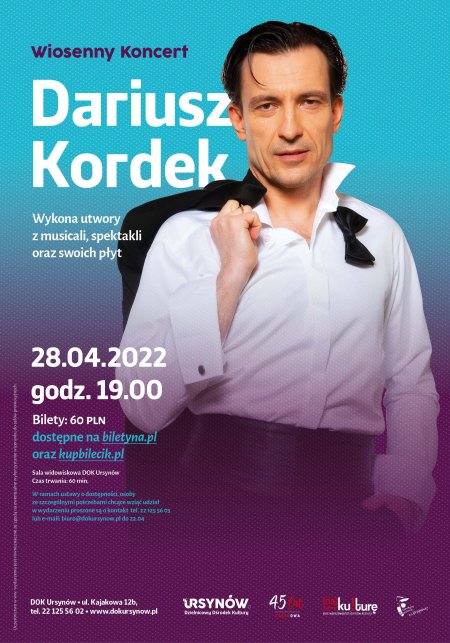Nazbierało się tego repertuaru wiele i chce się z Państwem nim podzielić. Dlatego zapraszam na „Wiosenny Koncert Darka Kordka” do DOK Ursynów.