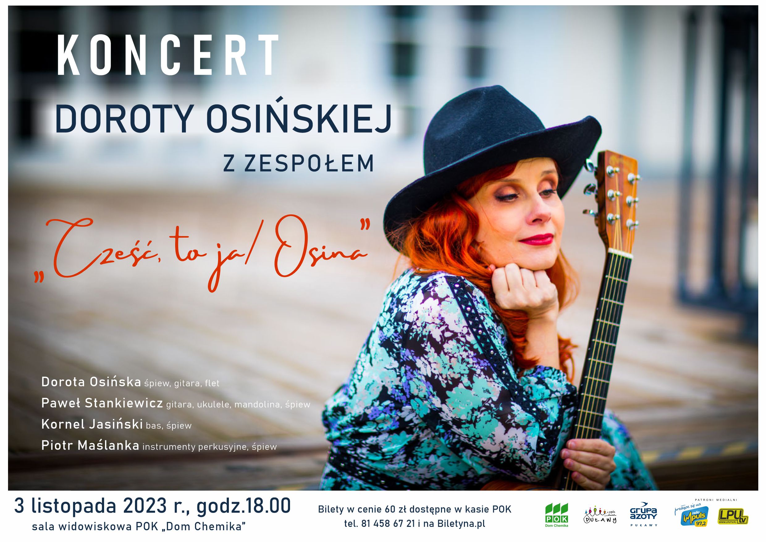 Na koncert zapraszamy 3 listopada o godz. 18.00 do sali widowiskowej POK „Dom Chemika”. Bilety w cenie 60 zł do nabycia w kasie POK i na Biletyna.pl.