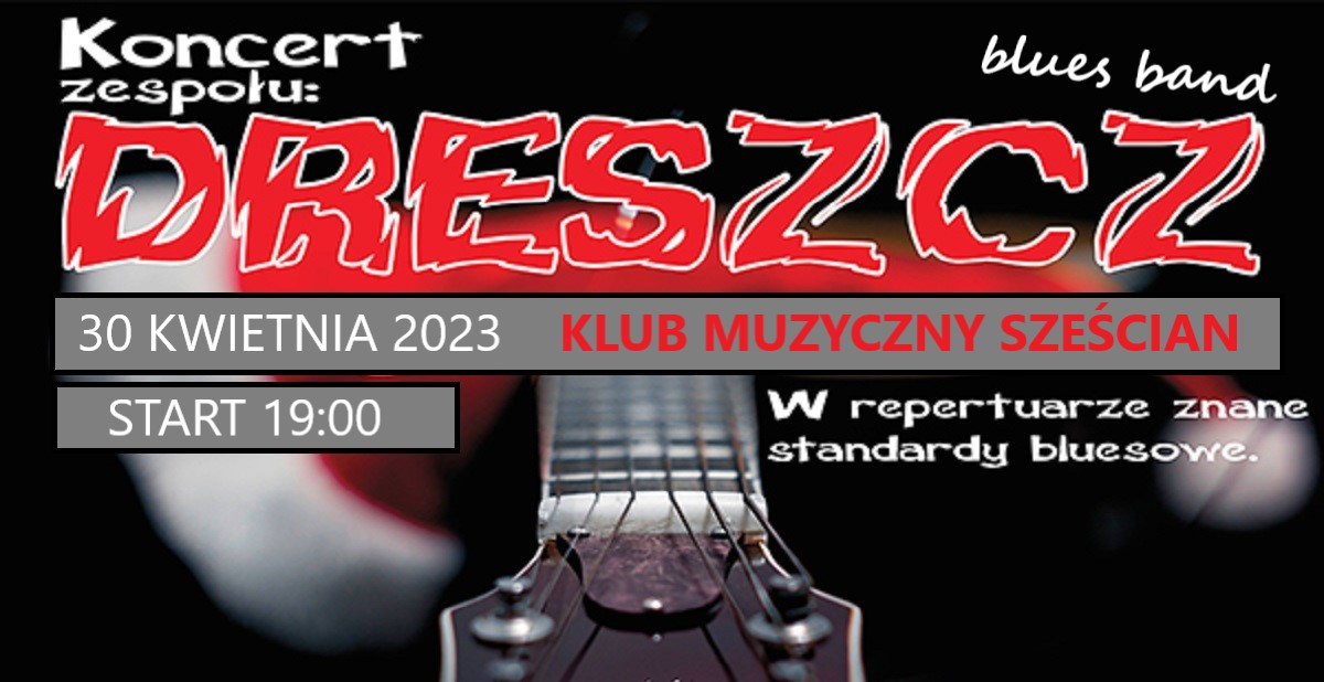 Zapraszamy na koncertowy wieczór z największymi bluesowymi przebojami w wykonaniu zeSpołu DRESZCZ BLUES BAND