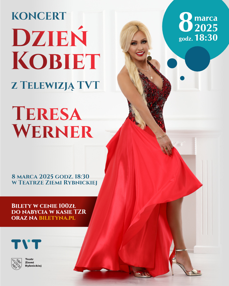 Spotkajmy się 8 marca o w Teatrze Ziemi Rybnickiej i razem świętujmy Dzień Koncert! Specjalnie dla Was na deskach Teatru Ziemi Rybnickiej zaśpiewa niepowtarzalna Teresa Werner.