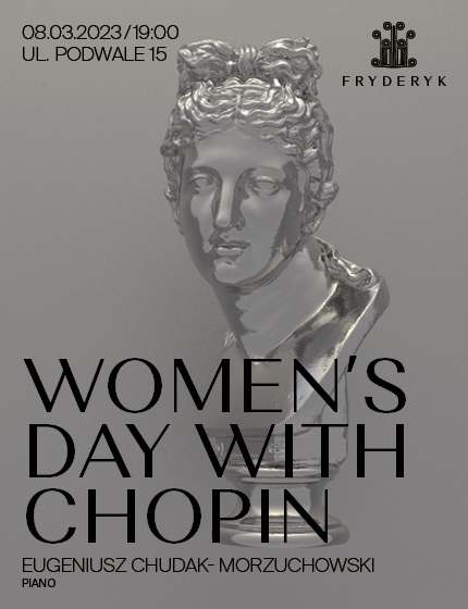 Zapraszamy serdecznie do Sali Koncertowej Fryderyk 8 marca 2023 o godz. 19.00 na recital fortepianowy z okazji Miedzynarodowego Dnia Kobiet - „Dzień Kobiet z Chopinem” w wykonaniu znakomitego Eugeniusza Chudak - Morzuchowskiego.