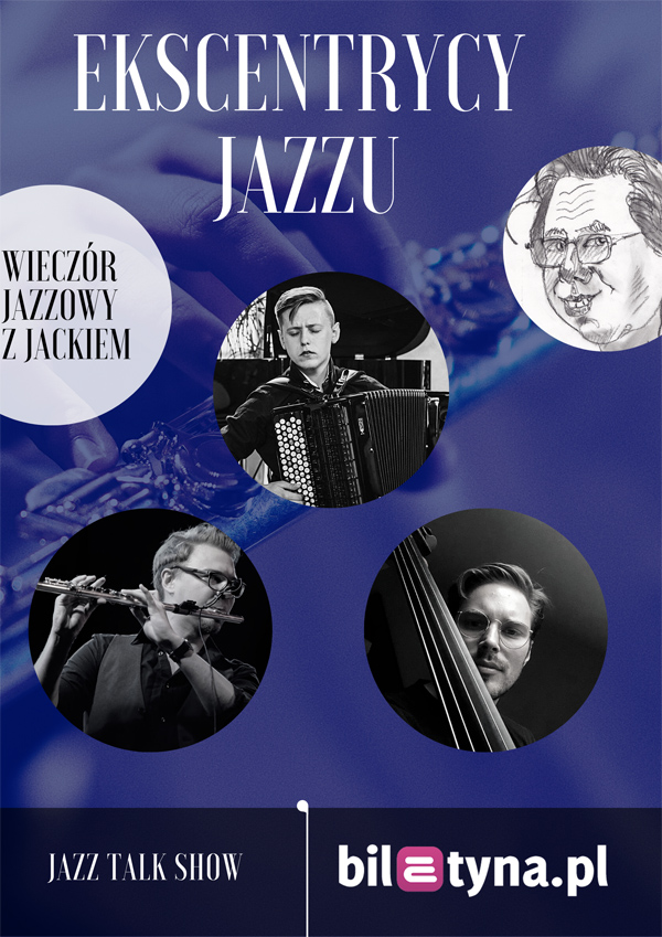 "Ekscentrycy Jazzu", to fuzja jazzu, tango, bałkańskiego temperamentu i improwizacji okraszonej wirtuozerią. Zapraszamy na ekscentryczną podróż po zakątkach muzycznej ekspresji. Muzycy zaprezentują standardy oraz tematy we własnych aranżacjach. Będzie to unikalna okazja na usłyszenie dzieł twórców z całego globu w wydaniu oryginalnego zestawu instrumentalnego. Indywidualny język każdego z muzyków zapewni interesującą narrację wieczoru w murach Piwnicy pod Baranami.