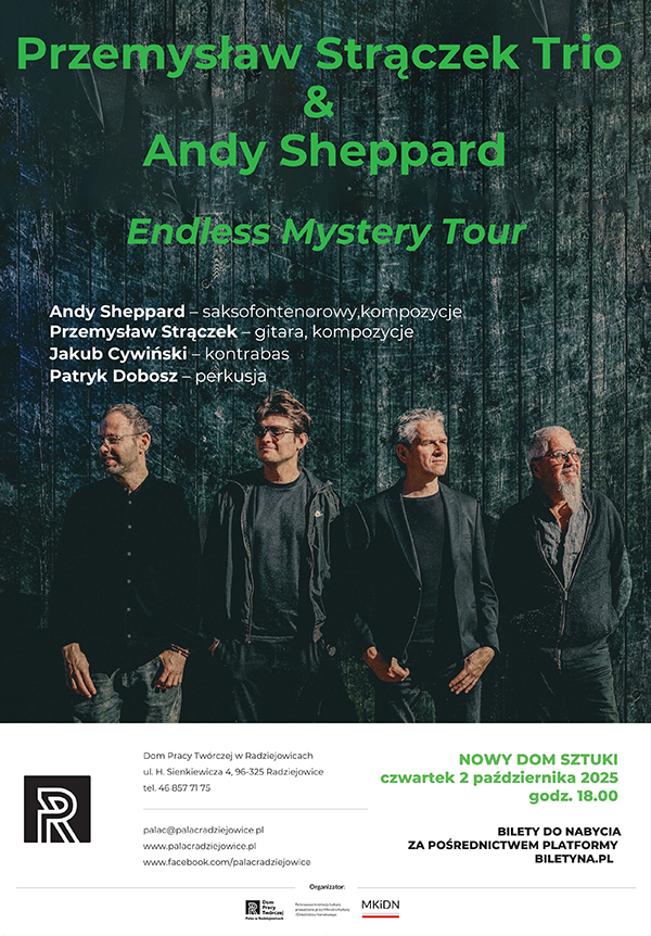 Niesamowita współpraca tria polskiego gitarzysty i kompozytora Przemysława Strączka z ikoną europejskiego jazzu Andy Sheppardem. Koncert promujący płytę "Endless Mystery"