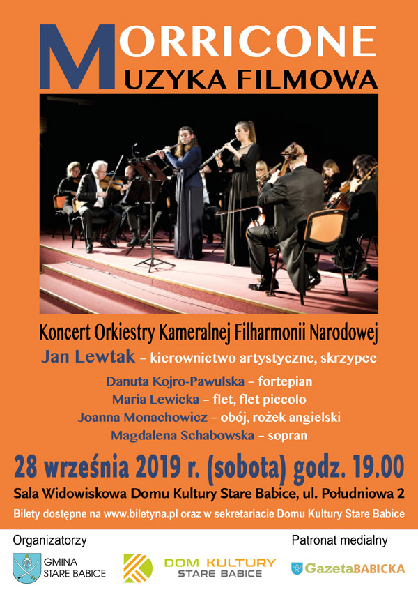 28 września o godz. 19.00 zapraszamy do świata przepięknej muzyki filmowej Maestro Ennio Morricone.