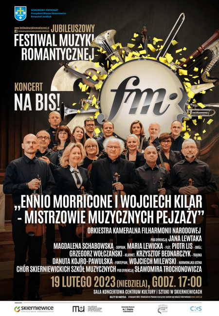 Koncert muzyki filmowej Ennio Morricone i Wojciecha Kilara w wykonaniu Orkiestry Kameralnej Filharmonii Narodowej pod dyrekcją Jana Lewtaka.