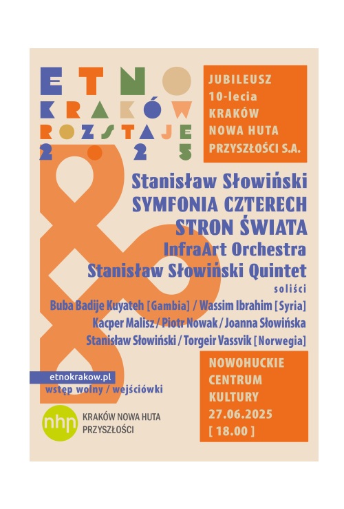 W ramach EtnoKraków/Rozstaje 2025 i na okoliczność jubileuszu 10-lecia działalności spółki: „Kraków Nowa Huta Przyszłości S.A.” na festiwalową scenę powraca Symfonia czterech stron świata Stanisława Słowińskiego.