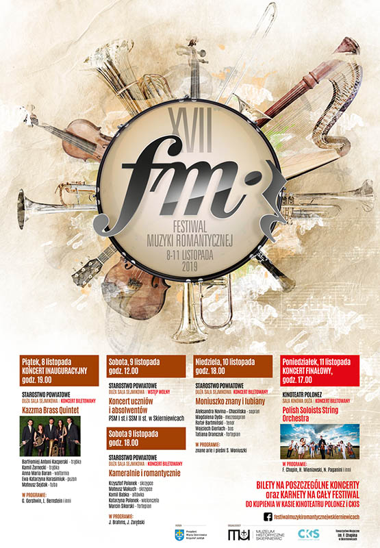 Miasto Skierniewice, Muzeum Historyczne Skierniewic, Towarzystwo Muzyczne im. Fryderyka Chopina oraz Centrum Kultury i Sztuki w Skierniewicach zapraszają na XVII Festiwal Muzyki Romantycznej.