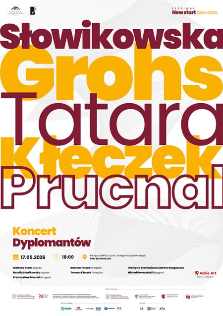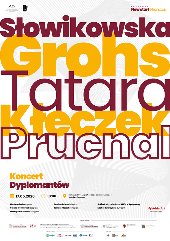 Akademia Muzyczna im. Feliksa Nowowiejskiego w Bydgoszczy zaprasza na Koncert Dyplomantów w ramach festiwalu New Start – New Stars. Podczas tego wyjątkowego wieczoru młodzi artyści zaprezentują swoje dyplomowe interpretacje, sięgając po najpiękniejsze i najbardziej wymagające dzieła repertuaru wokalnego i instrumentalnego. Program koncertu łączy emocjonalną intensywność opery włoskiej z klasyką koncertu symfonicznego i wirtuozerią muzyki kameralnej w wielkiej formie.
