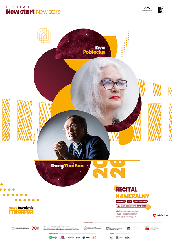 Akademia Muzyczna im. Feliksa Nowowiejskiego w Bydgoszczy zaprasza na wyjątkowy Recital Kameralny w ramach festiwalu New Start – New Stars. Wydarzenie odbędzie się 15 maja w Sali Symfonicznej Kampusu AMFN, oferując wieczór wypełniony muzyką najwyższej próby. Na scenie wystąpią Dang Thai Son oraz Ewa Pobłocka – pianiści o światowej renomie, których interpretacje od lat zachwycają publiczność na najważniejszych estradach koncertowych.