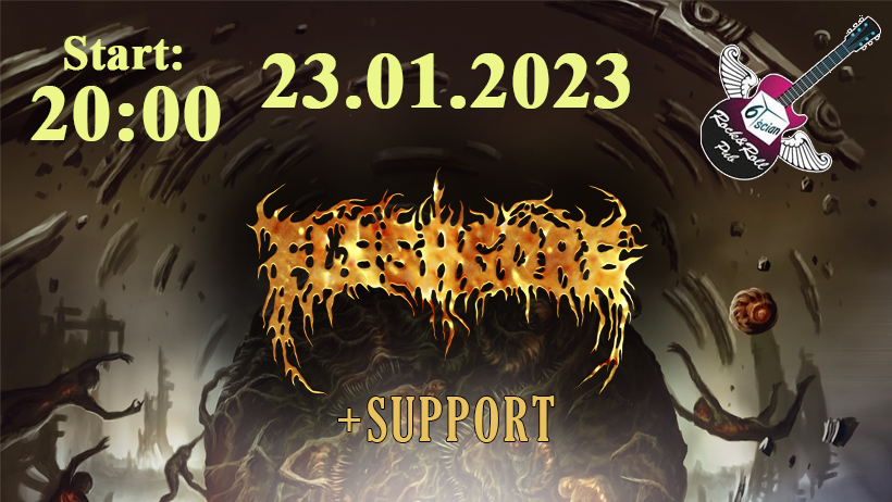 23-01-2023 FLESHGORE + SUPPORT � 23.01.2023 (poniedzialek), godz. 20:00 � 6-Ścian PUB Sześcian � Białystok �️ Wstęp: 30 zł zagrają: FLESHGORE [Death Metal / Kijów, Ukraina]