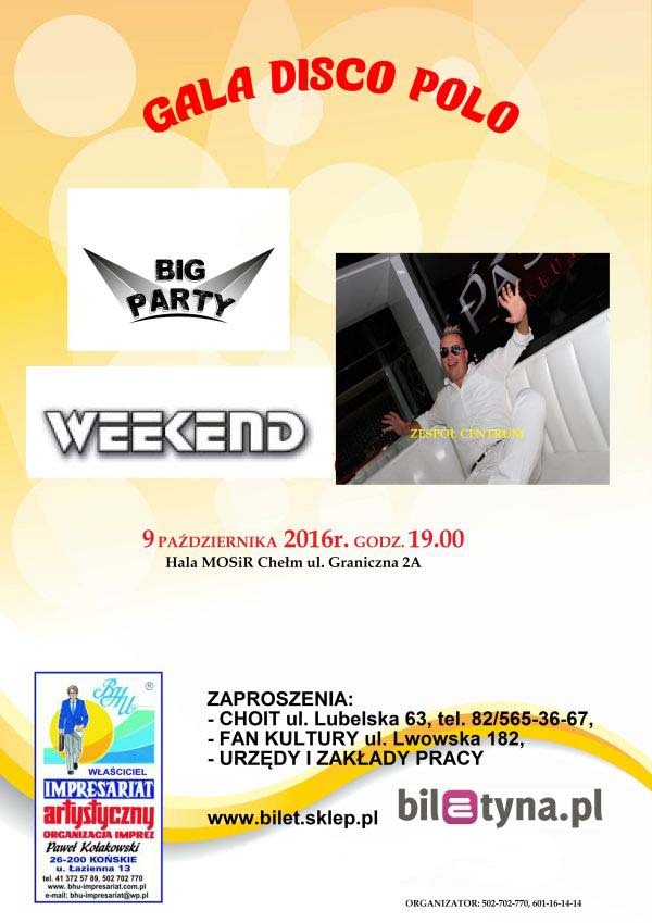 9 października w Chełmie o godz. 19.00 odbędzie się GALA DISCO POLO, na której wystąpią: