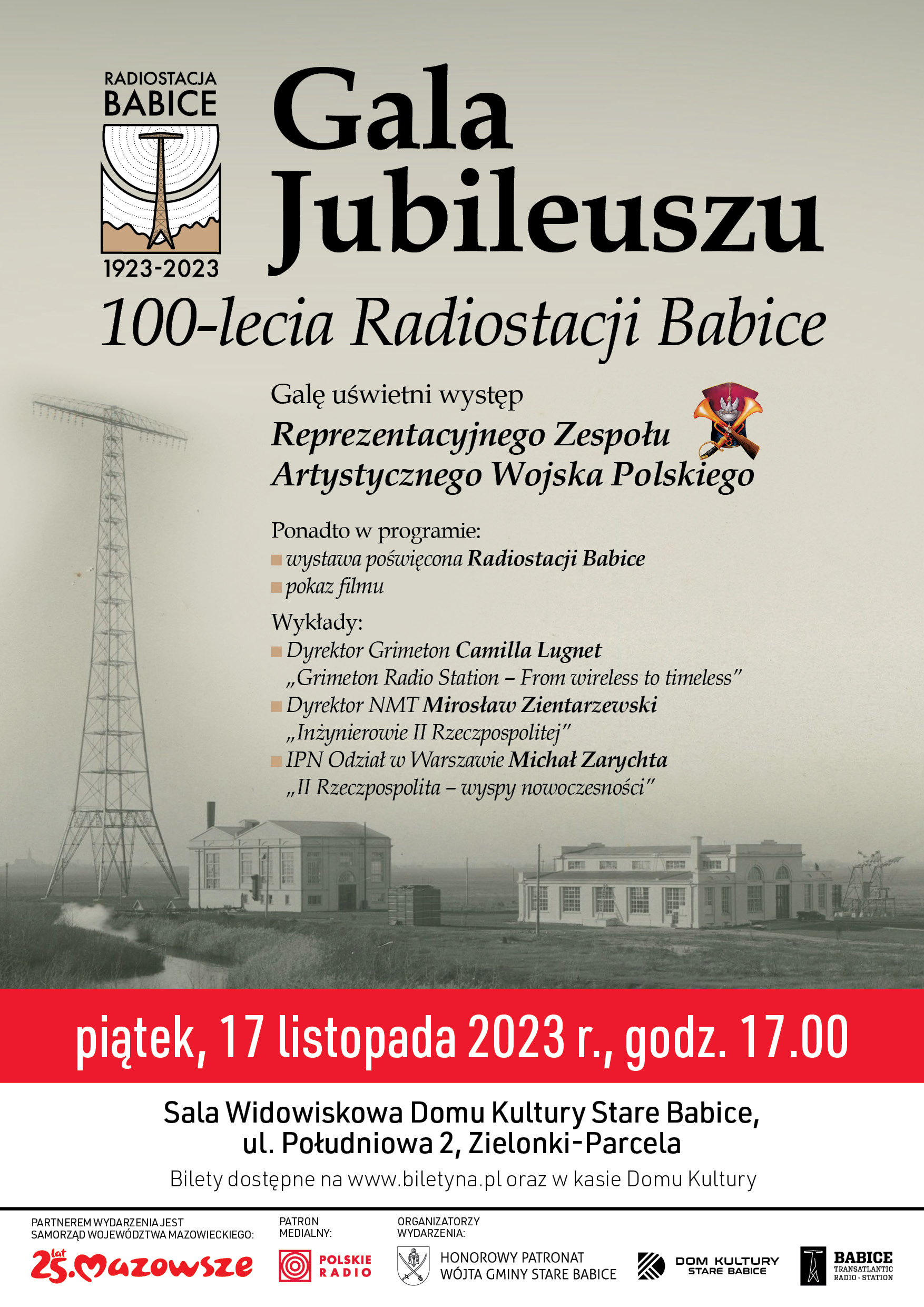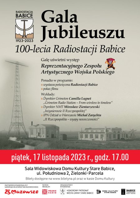 Dla upamiętnienia tamtych wydarzeń czerpiąc z najlepszych tradycji II Rzeczpospolitej, w 100-lecie uruchomienia Radiostacji, pragniemy Państwa zaprosić na Galę Jubileuszu 100-lecie Radiostacji Babice.