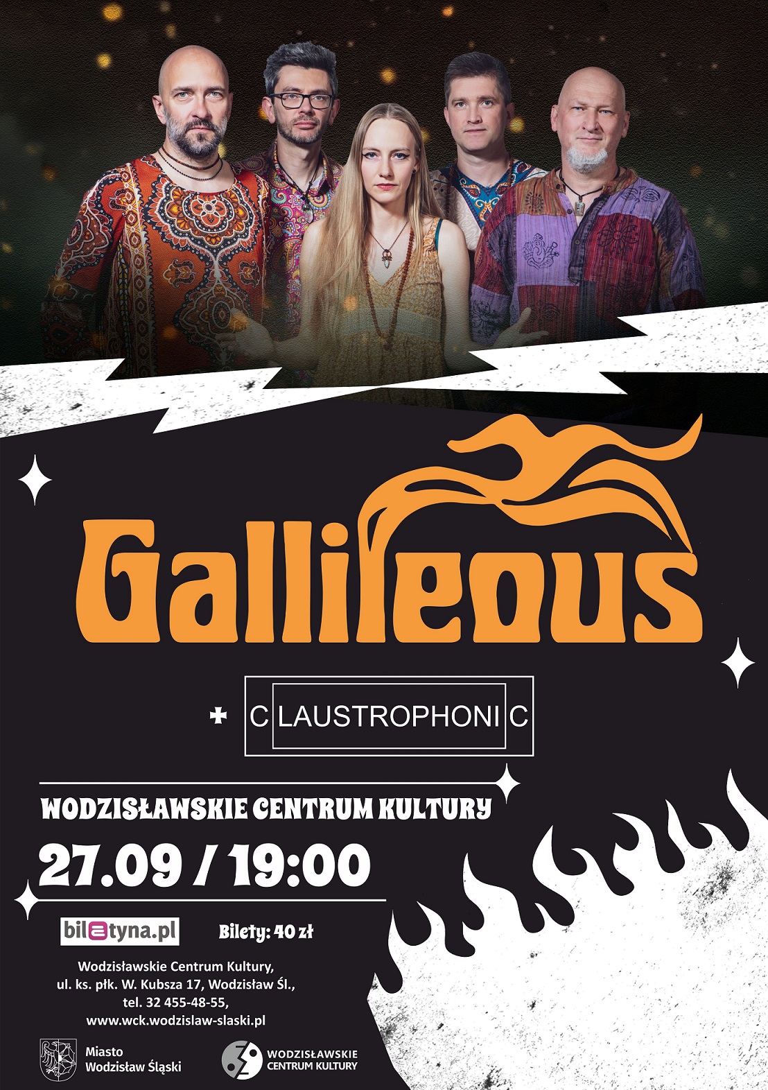 Przed nami potężna dźwiękowa zawierucha! Już 27 września w Wodzisławskim Centrum Kultury zanurzymy się w gitarowe brzmienie połączone z rozbudowaną sekcją instrumentów klawiszowych, stabilną sekcją rytmiczną oraz mocnym, niepowtarzalnym wokalem. Wszystko to za sprawą koncertu zespołu Gallileous i poprzedzającego go występu grupy Claustrophonic. To będzie bardzo mocny wieczór! Bilety na to wydarzenie już w sprzedaży.