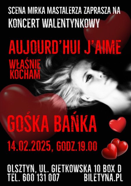 Walentynkowy Koncert , w ktorym uslyszymy francuskie piosenki milosne oraz utwory do tekstow Haliny Poswiatowskiej , poetki , ktora najpiekniej pisala o Milosci .