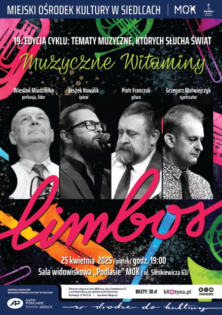 Gotowi na muzyczną podróż pełną energii i emocji? Zapraszamy na "Muzyczne Witaminy" - koncert Grupy Muzycznej Limbos! Będzie to dziewiętnasta już edycja z cyklu "Tematy muzyczne, których słucha świat".