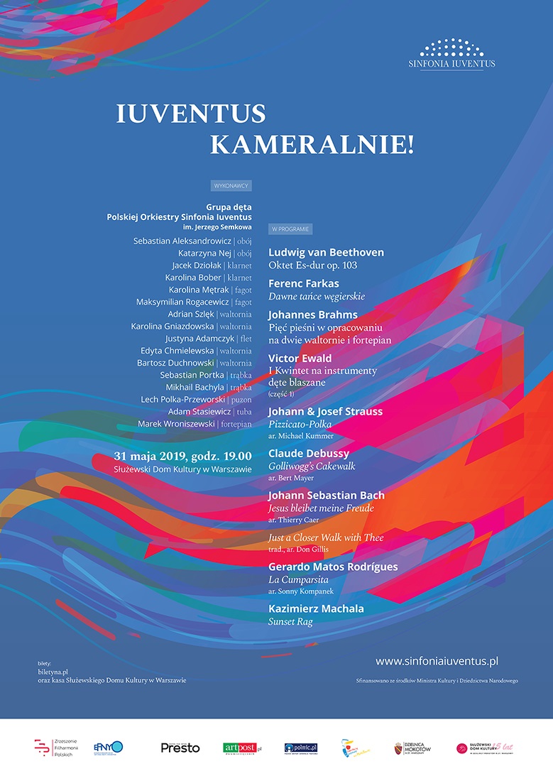 Muzyka przeznaczana specjalnie na instrumenty dęte ma niezwykle długą historię – ślady takich zespołów, grupujących np. wielu trębaczy, znajdujemy w najdawniejszej antycznej ikonografii. Średniowiecze i renesans znały zespoły nazywane alta cappella złożone z bogatej i różnorodnej obsady pomortów, krzywuł, dulcianów, cynków i in., formowano też konsorty puzonów oraz „chóry” trąbek. Te instrumenty zastrzeżone były zwłaszcza dla podkreślania splendoru dworów monarszych i arystokratycznych, stąd trębacze zrzeszali się długo w osobnych, ekskluzywnych i hermetycznych cechach. W programie majowego koncertu znalazły się utwory, wśród których każdy znajdzie coś dla siebie – prócz kompozycji oryginalnie przeznaczonych na składy dęte, jak Oktet Beethovena i Kwintet Ewalda, zabrzmią brawurowe transkrypcje repertuaru od baroku po współczesną muzykę popularną i jazz. Na koncert zapraszają soliści grupy dętej Polskiej Orkiestry Sinfonia Iuventus im. Jerzego Semkowa.