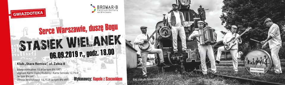 Scenę w „Starej Remizie” przekażemy w ręce muzycznych weteranów Włocławka – Kapeli z Szaconkiem, dzięki którym z pewnością serca zabiją nam mocniej dla utworów barda polskiej piosenki, a nogi nie będą się mogły powstrzymać od tańca.