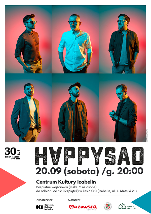 20.09 (sobota) o 20:00 zapraszamy Was na koncert zespołu Happysad!
