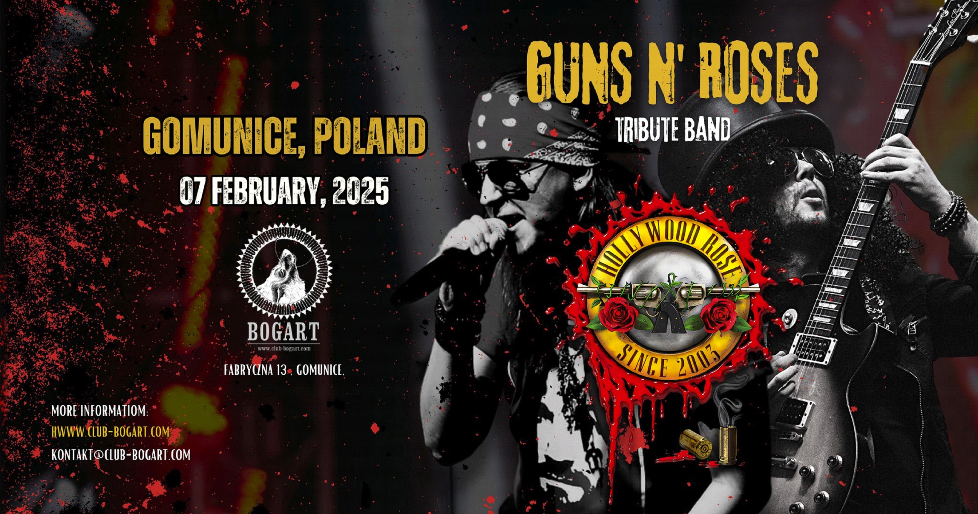 Miłośników legendarnego GUNS N' ROSES zapraszamy na wyjątkowy konert! Pochodzący z Węgier HOLLYWOOD ROSE to jeden z najlepszych tribute bandów Gunsów!