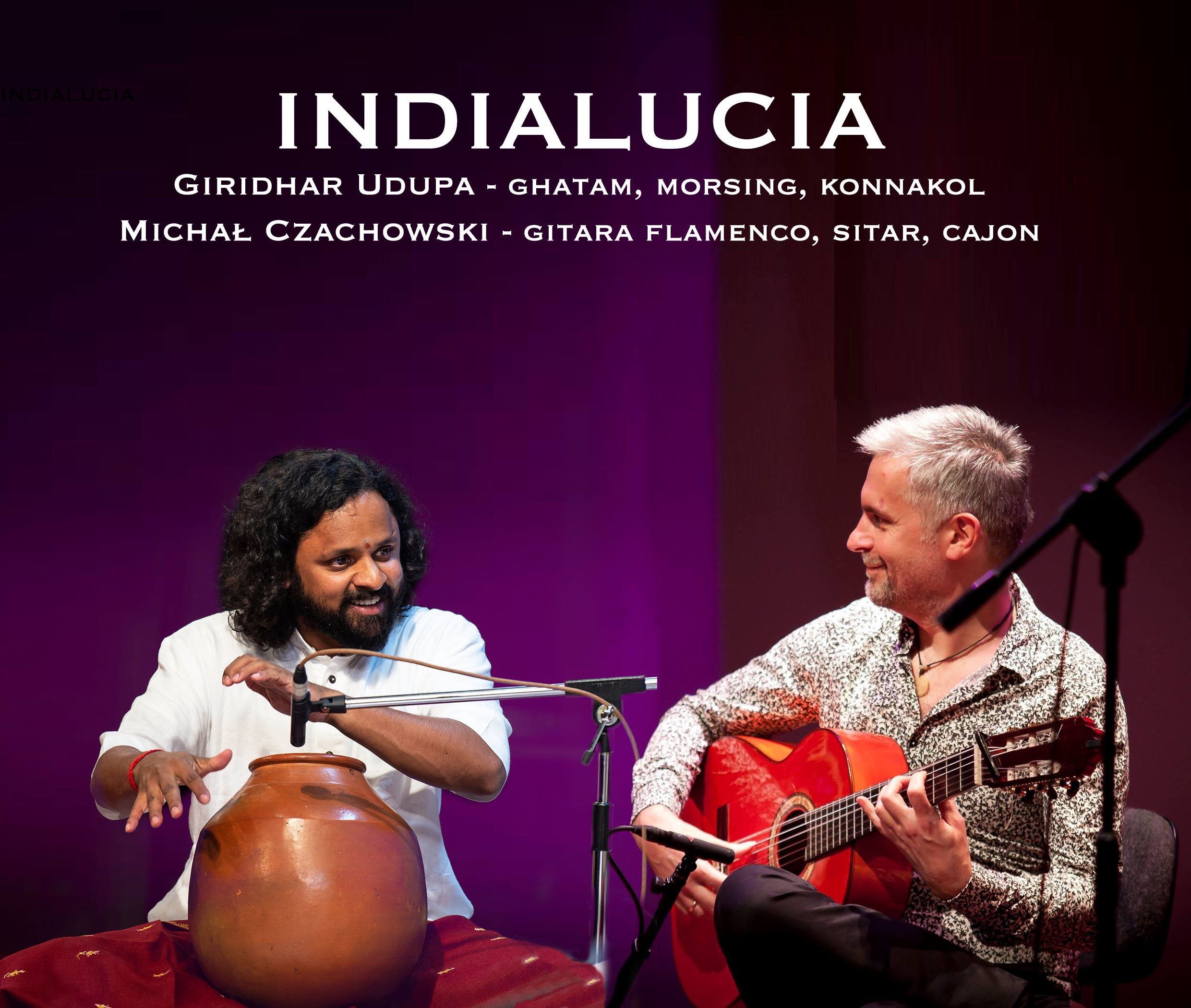 Fascynujące spotkanie dwóch kultur: wschodu i południa – Indii i Andaluzji. Z jednej strony ogień flamenco, z drugiej egzotyka indyjskiej muzyki tradycyjnej - to połączenie stylów muzycznych, z którego słynie zespół INDIALUCIA. Tym razem wystąpią akustycznie, w duecie: Michał Czachowski - wirtuoz gitary flamenco i Giridhar UDUPA - mistrz instrumentów perkusyjnych. Prawdziwa gratka dla wielbicieli muzyki i akustycznych koncertów klubowych. Gorąco zapraszamy!