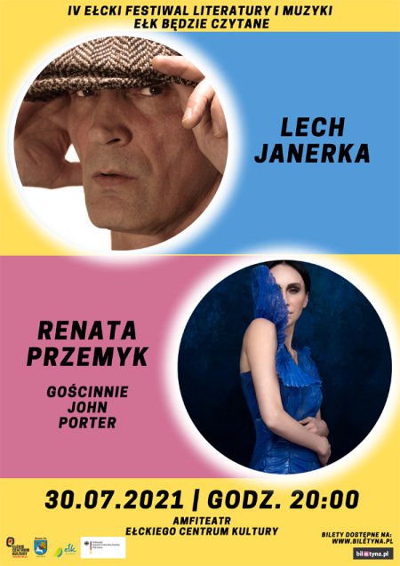 IV Ełcki Festiwal Literatury i Muzyki "Ełk, Będzie Czytane" to trzy dni spotkań autorskich, koncertów i wystaw. 30 lipca 2021 godz. 20:30 koncert: Lech Janerka | koncert: Renata Przemyk gościnnie John Porter