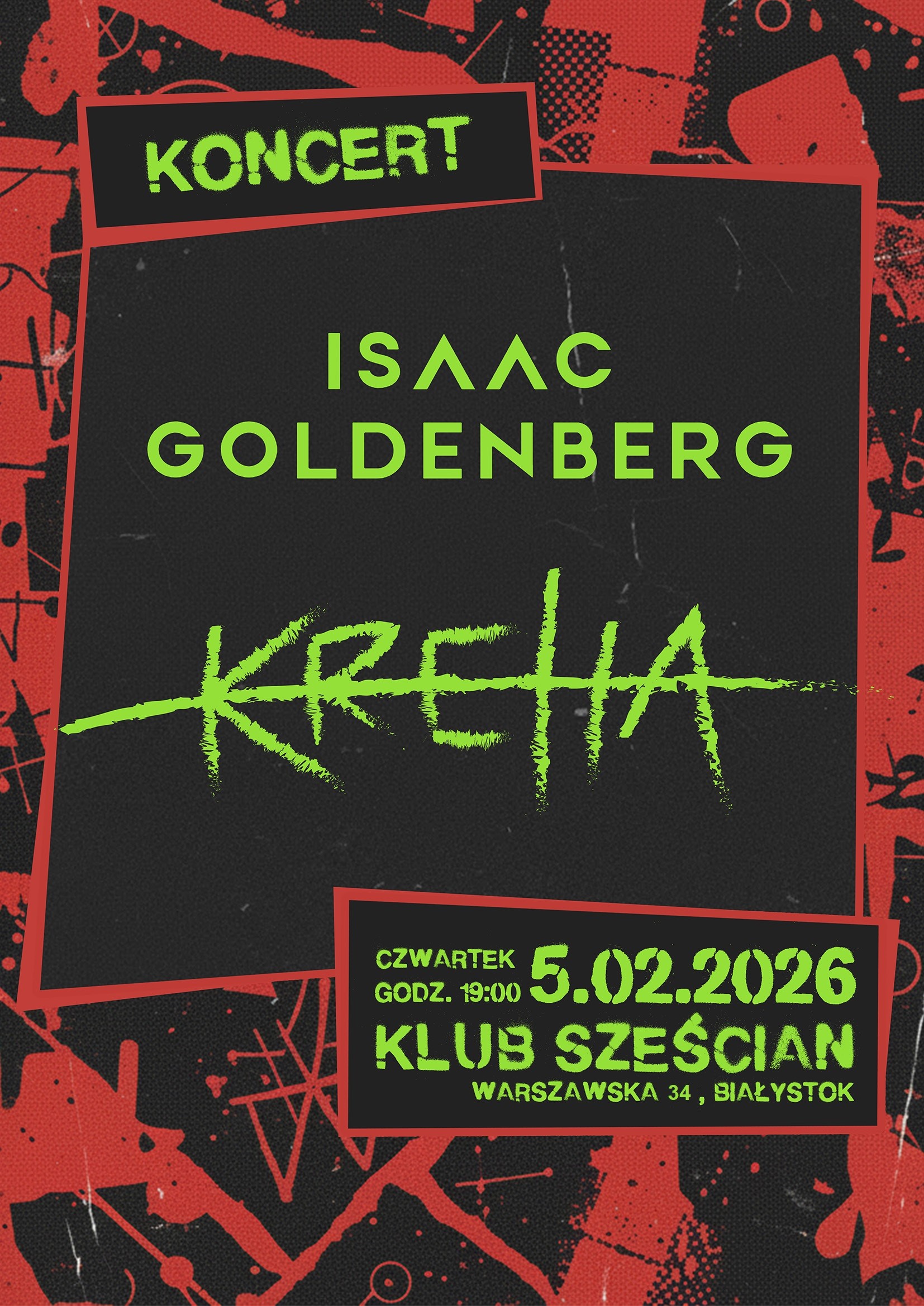 🎸🔥 Dwa pokolenia, dwie różne odsłony rocka i jedna wspólna scena pełna autentycznych emocji! Zapraszamy na wyjątkowy wieczór, gdzie doświadczenie i charyzma zespołu KREHA spotkają się z post-punkową świeżością oraz melancholią grupy Isaac Goldenberg.