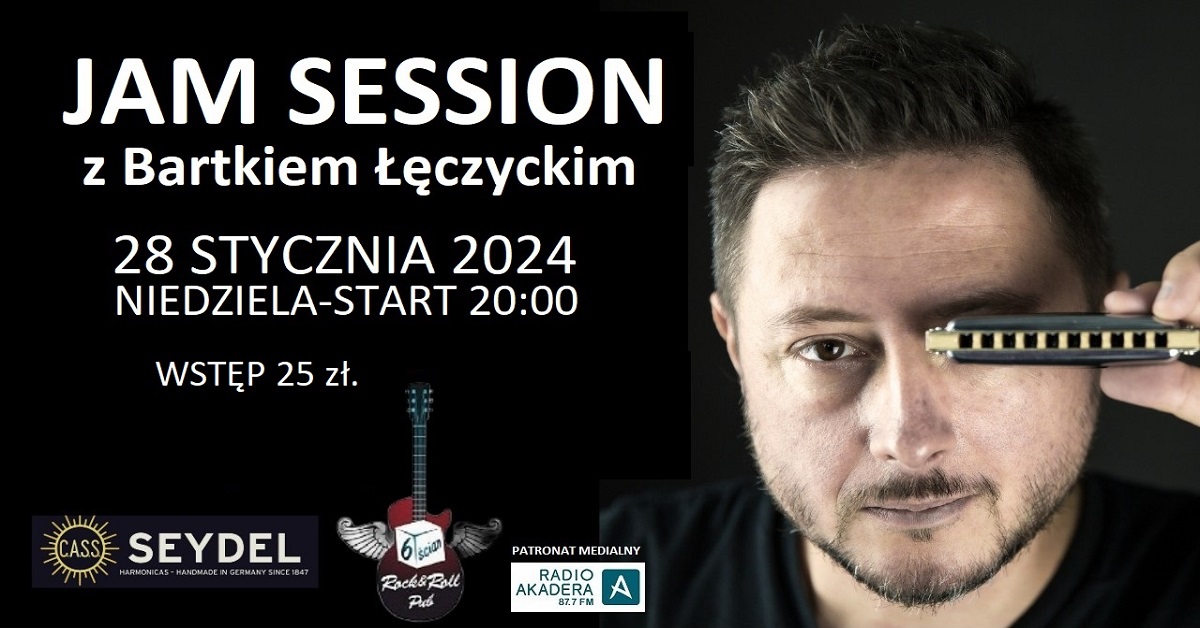 TEGOŻ WIECZORU JAM SESSION ROZPROWADZA CZOŁOWY POLSKI HARMONIJKARZ BARTEK ŁĘCZYCKI.