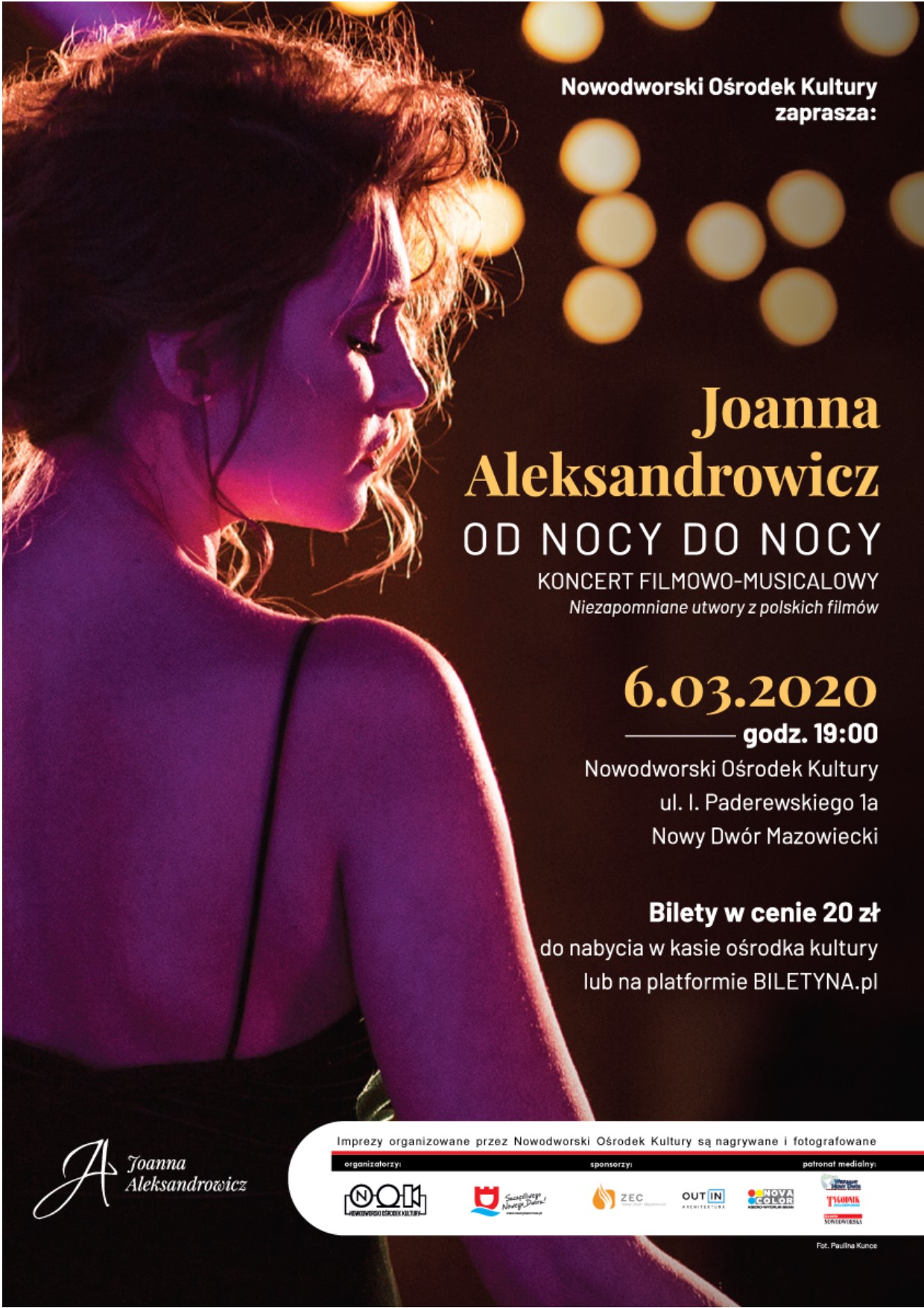 Zapraszamy na koncert w wykonaniu Joanny Aleksandrowicz z zespołem podczas którego usłyszymy najpiękniejsze, znane i mniej znane utwory filmowo-musicalowe