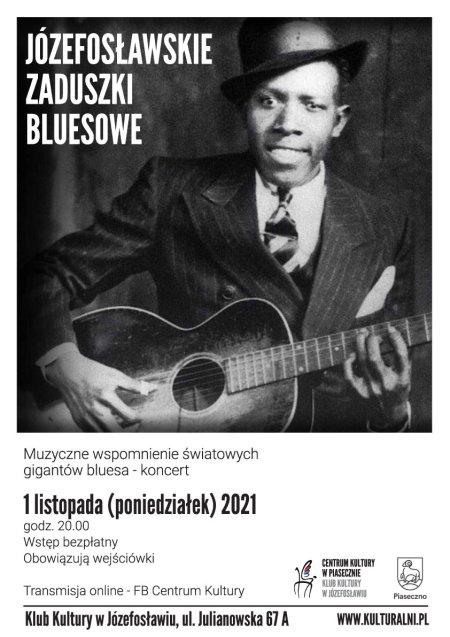 Piękna muzyka nie umiera nigdy! W czas zaduszny warto o tym przypomnieć i do jesiennej nostalgii dosypać gitarowej przyprawy. Klub Kultury w Józefosławiu zaprasza na wyjątkowy koncert: Zaduszki Bluesowe w Józefosławiu!