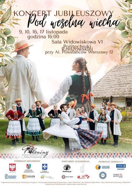 Podczas nich prezentować się będą 4 grupy zespołowe, 4 grupy Wychowanków „Połonin”, 1 grupa „połoninowych dzieci”, a także kapela. Organizatorami koncertów są Stowarzyszenie Przyjaciół i Wychowanków Studenckiego Zespołu Pieśni i Tańca „POŁONINY” oraz Studencki Zespół Pieśni i Tańca Politechniki Rzeszowskiej „POŁONINY”. Wydarzenie jest dofinansowane z budżetu gminy miasta Rzeszów. Serdecznie zapraszamy!