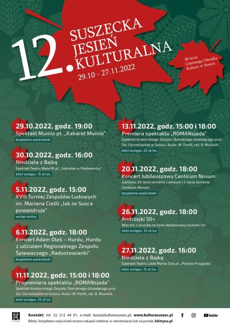 W ramach 12. Suszeckiej Jesieni Kulturalnej będziemy świętować Jubileusz Canticum Novum, które obchodzi 20-lecie istnienia Canticum oraz 5-lecie istnienia Canticum Novum. Koncert odbędzie się 20 listopada o godz. 18:00.