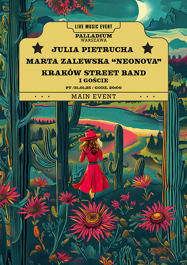 Już niebawem, bo 31.01.2025r w warszawskim klubie Palladium czeka Państwa niezwykłe artystyczne wydarzenie jakim stanie się koncert Julii Pietruchy z Martą Zalewską, między innymi z piosenkami znajdującymi się na wydanej właśnie płycie „Neonova”, oaz zespołu „Kraków Street Band”.