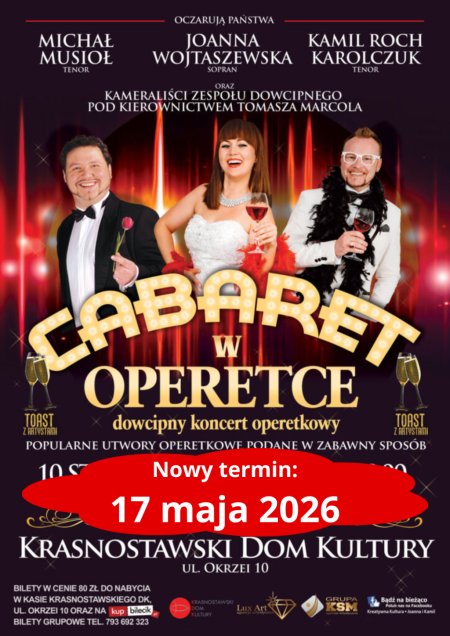 To wieczór, podczas którego klasyka puszcza oko do kabaretu, a publiczność śmieje się, nuci i… nie chce wychodzić z sali. Przyjdź, oderwij się od codzienności i pozwól się porwać muzycznej przygodzie z przymrużeniem oka!