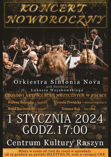Centrum Kultury Raszyn zaprasza na KONCERT NOWOROCZNY w wykonaniu Orkiestry Sinfonia Nova pod dyrekcją Łukasza Wojakowskiego oraz czołowych artystów scen muzycznych w Polsce!
